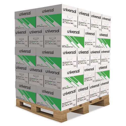 30% Recycled Copy Paper, 92 Bright, 20 lb Bond Weight, 8.5 x 11, White, 500 Sheets/Ream, 10 Reams/Carton, 40 Cartons/Pallet-(UNV20030PLT)
