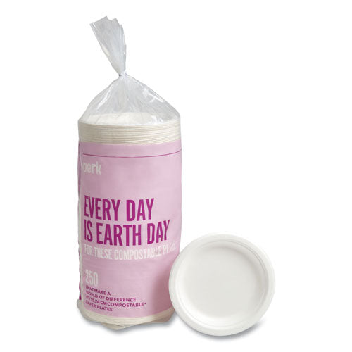 Compostable Paper Plates, Bagasse, 6" dia, White, 250/Pack-(PRK24394008)