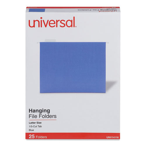Deluxe Bright Color Hanging File Folders, Letter Size, 1/5-Cut Tabs, Blue, 25/Box-(UNV14116)