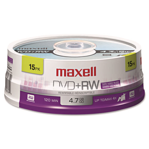 DVD+RW Rewritable Disc, 4.7 GB, 4x, Spindle, Silver, 15/Pack-(MAX634046)