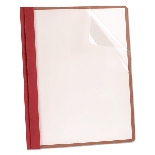 Earthwise by Oxford 100% Recycled Clear Front Report Covers, 3-Prong Fastener, 0.5" Capacity, 8.5 x 11, Clear/Red, 25/Box-(OXF57871)