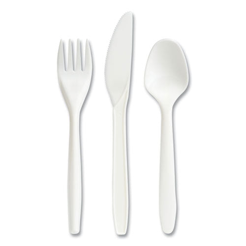 Eco-ID Mediumweight Compostable Cutlery, Fork/Knife/Teaspoon, White, 120 Sets/Pack-(PRK24394124)