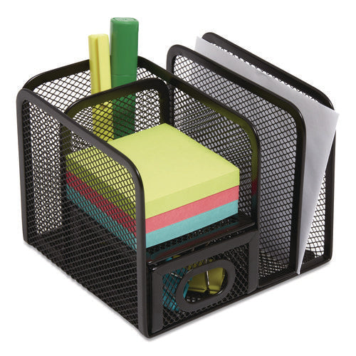 Five Compartment Wire Mesh Accessory Holder, 5.9 x 6.29 x 5.11, Black-(TUD24402461)