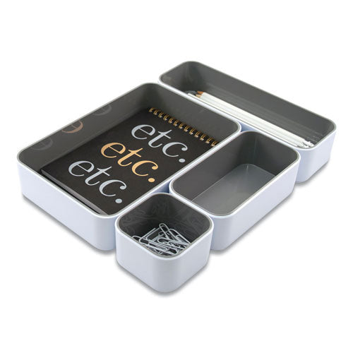 Fusion Stacking Bins, 4 Compartments, Plastic, 12.1 x 9.1 x 2.2, White/Gray, 4 Pieces-(AVT37592)