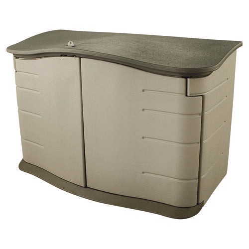 Horizontal Outdoor Storage Shed, 55 x 28 x 36, 20 cu ft, Olive Green/Sandstone-(RUB3748)