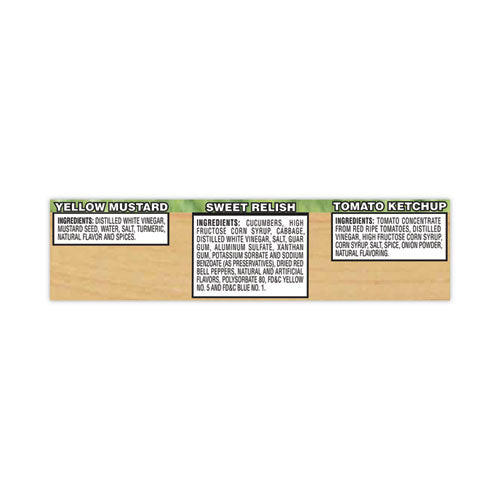 - Ketchup, sweet relish and yellow mustard picnic pack includes all your favorite condiments