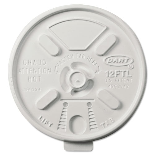 Lift n Lock Plastic Hot Cup Lids, Fits 10 oz to 14 oz Cups, White, 1,000/Carton-(DCC12FTL)