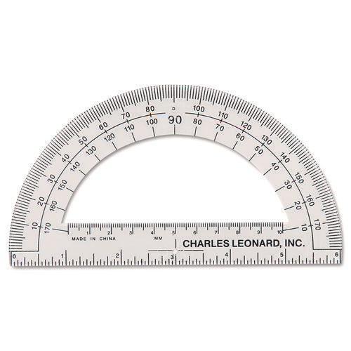 Open Center Protractor, Plastic, 6" Ruler Edge, Clear, Dozen-(LEO77106)