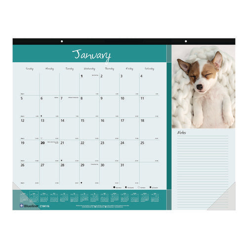 Pets Collection Monthly Desk Pad, Puppies Photography, 22 x 17, Black Binding, Clear Corners, 12-Month (Jan to Dec): 2023-(REDC194116)