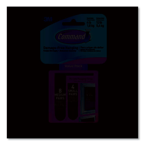 Picture Hanging Strips, Value Pack, Removable, (4) Small 0.63 x 1.81 and (8) Medium 0.75 x 2.75, White, 12 Pairs/Pack-(MMM70005130078)