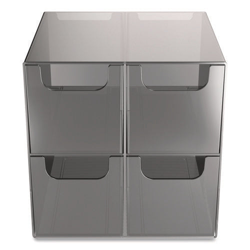 Plastic Cube Desktop Organizer, 4 Compartments, 6 x 6 x 6, Smoke-(TUD24418569)