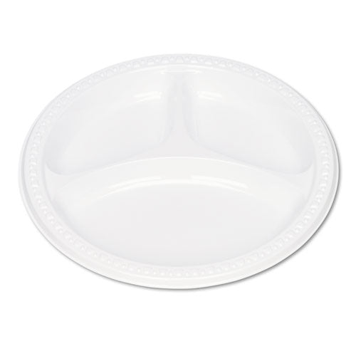 Plastic Dinnerware, Compartment Plates, 9" dia, White, 125/Pack-(TBL19644WH)