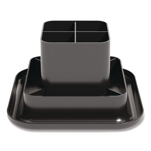 Plastic Rotating Organizer, 9 Compartments, Plastic, 8.2" Diameter x 5.4"h, Black-(TUD24418570)