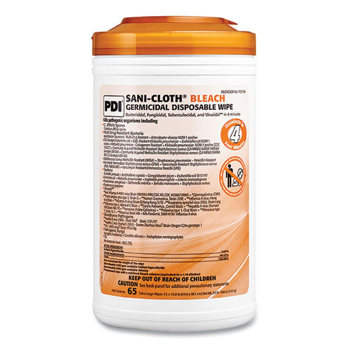 Sani-Cloth Bleach Germicidal Disposable Wipes, 1-Ply, 7.5 x 15, Unscented, White, 65/Pack-(PDIP25784)