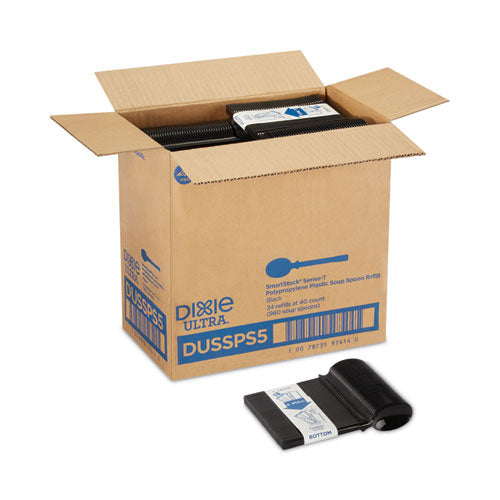 SmartStock Tri-Tower Dispensing System Cutlery, Soup Spoons, Mediumweight, Polypropylene, Black, 40/Pack, 24 Packs/Carton-(DXEDUSSPS5)