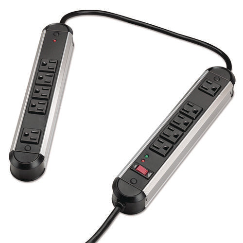 Split Metal Surge Protector, 10 AC Outlets, 6 ft Cord, 1,250 J, Black/Silver-(FEL99082)