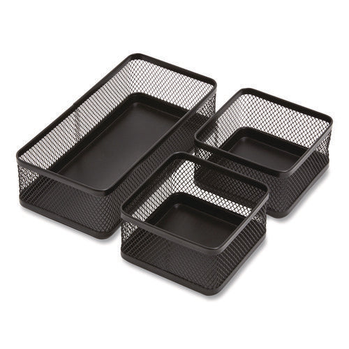 Three Compartment Stackable Wire Mesh Desk Organizer, 8.46 x 4.92 x 4.33, Black-(TUD24402473)
