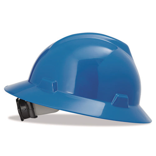 V-Gard Full-Brim Hard Hats, Ratchet Suspension, Size 6.5 to 8, Blue-(MSA475368)