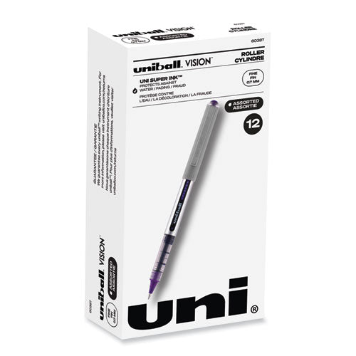 VISION Roller Ball Pen, Stick, Fine 0.7 mm, Assorted Ink and Barrel Colors, Dozen-(UBC60387)